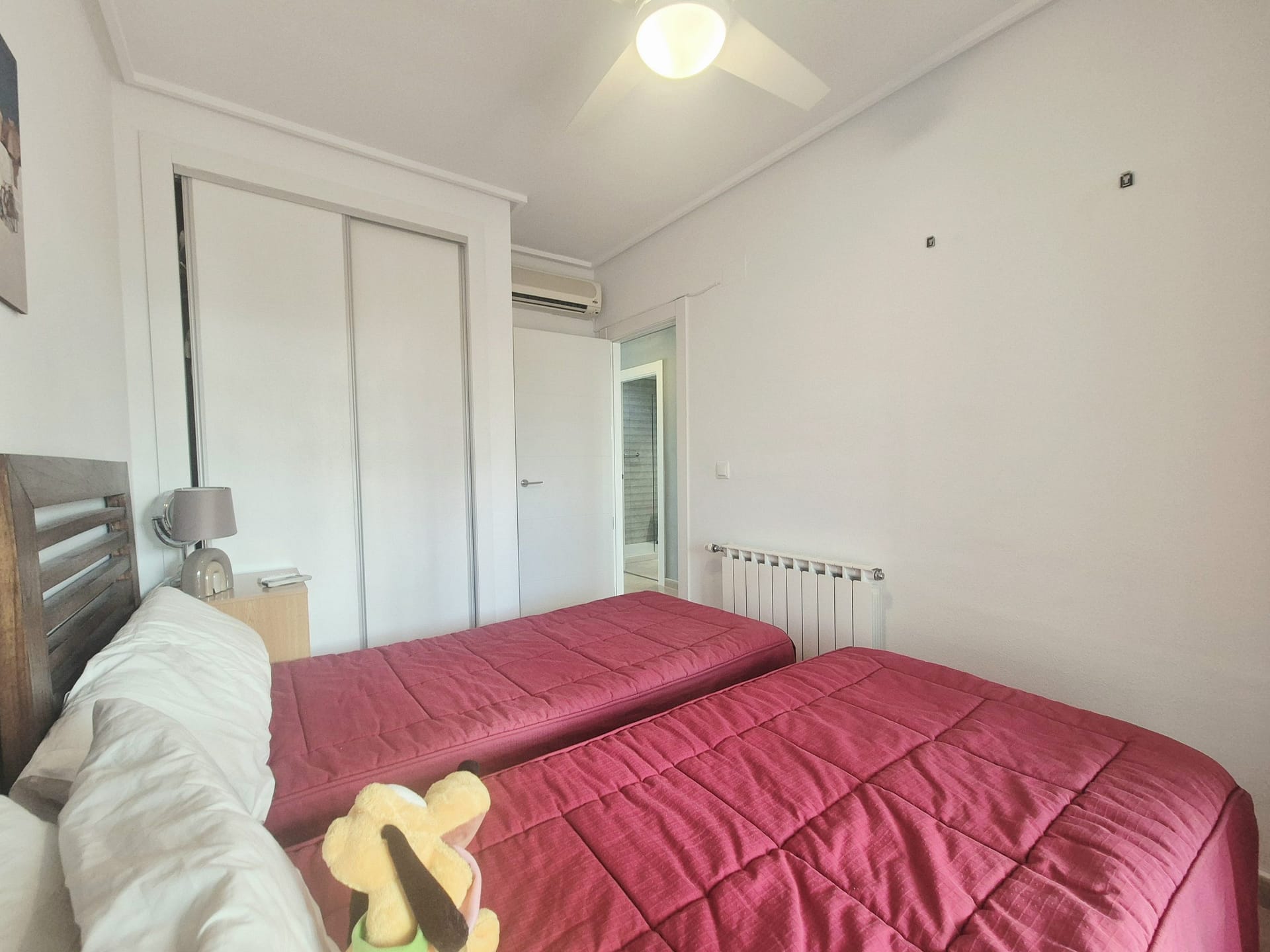 This apartment is the most sought-after design, with its signature curved wall and larger kitchen space. It has been tastefully upgraded, including a modern bathroom with a large walk-in shower and new tiling throughout. The extended terrace has been stylishly tiled and now features glass curtains. Allowing the covered area to be using as a dining room. The generously sizes kitchen is fully equipping and boasts upgraded marble countertops. Both double bedrooms have patio doors that open directly to the terrace, ensuring sunlight throughout the day. Enjoy golf views and be just a short stroll from all the amenities La Torre Golf Resort has to offer. The apartment is being sold fully furnishes, with private underground parking, ready for you to move in and live the Spanish dream.