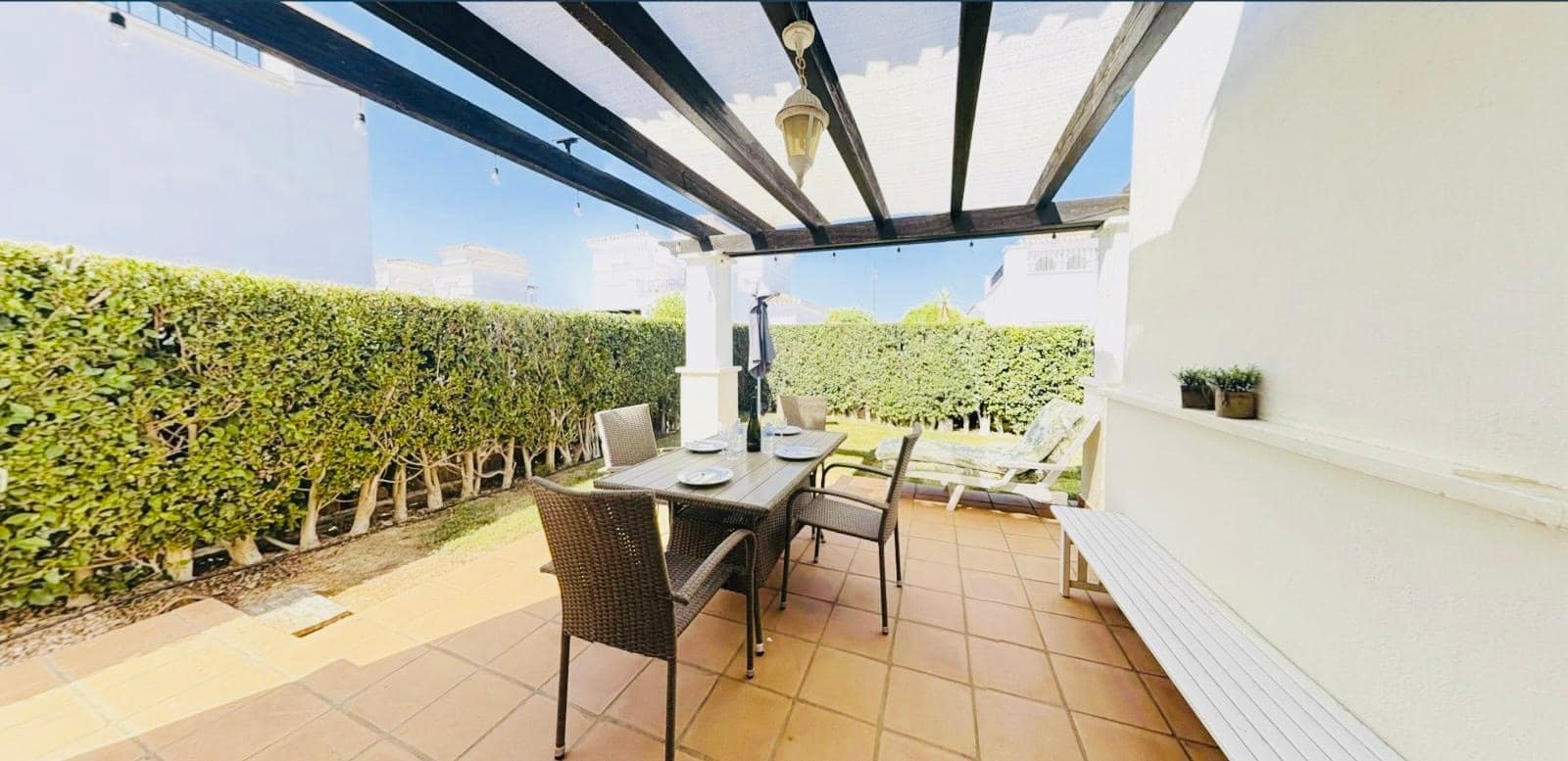 Outside, you’ll find a spacious private garden and covered terrace, ideal for alfresco dining, BBQs, or simply unwinding under the Spanish sun.