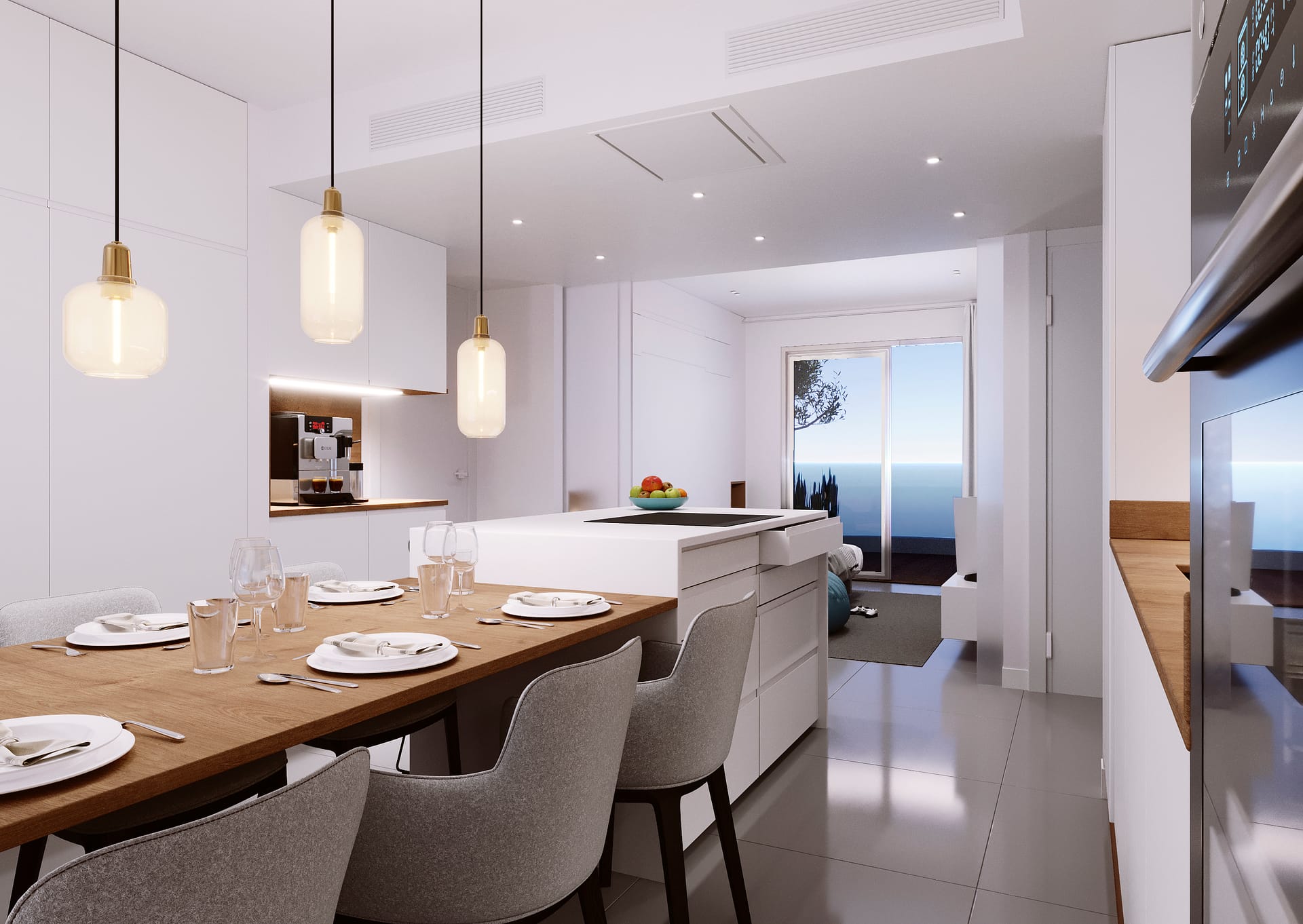 The exteriors of this residential are designed to maximize enjoyment of the natural surroundings. Each property features a private garden, ideal for outdoor relaxation. Spacious terraces offer additional space to enjoy sea views and the Mediterranean climate. Additionally, some types include a solarium, providing an exclusive space for sunbathing or enjoying moments of tranquility. The beachfront location ensures residents can enjoy the sea breeze and uninterrupted views of the horizon.