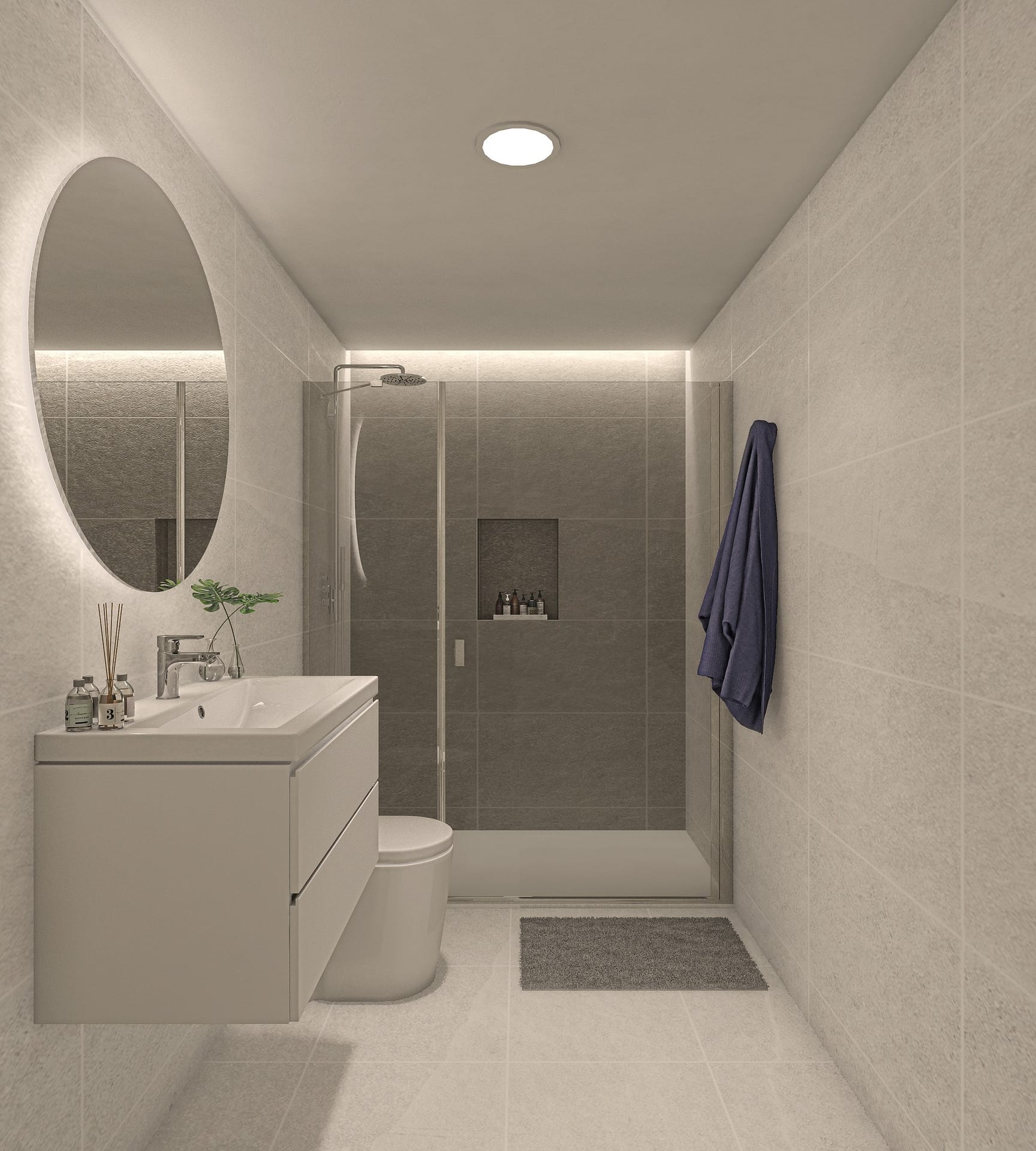 The interior of the bungalows is designed to offer a cozy and modern space. Ceramic floors add an elegant touch and are easy to maintain. The homes feature one or two bedrooms and one or two bathrooms, depending on the chosen type, allowing for adaptation to different family needs. Built-in wardrobes provide efficient storage, maintaining the home’s order and aesthetics. Additionally, each property includes a terrace and a solarium, expanding the possibilities of enjoying the outdoors from the comfort of home. Security is guaranteed with a video intercom, adding an extra level of protection and peace of mind.