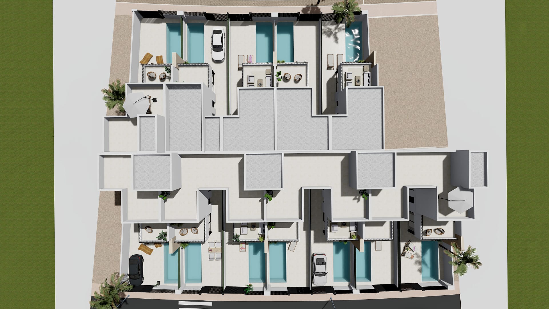 Residencial Rosa Morada is a luxury complex of 12 attached villas with private swimming pool, terrace, and solarium with Summer kitchen in selected properties, where you can enjoy the sun every day of the year. In addition, two properties include photovoltaic panels for energy saving.