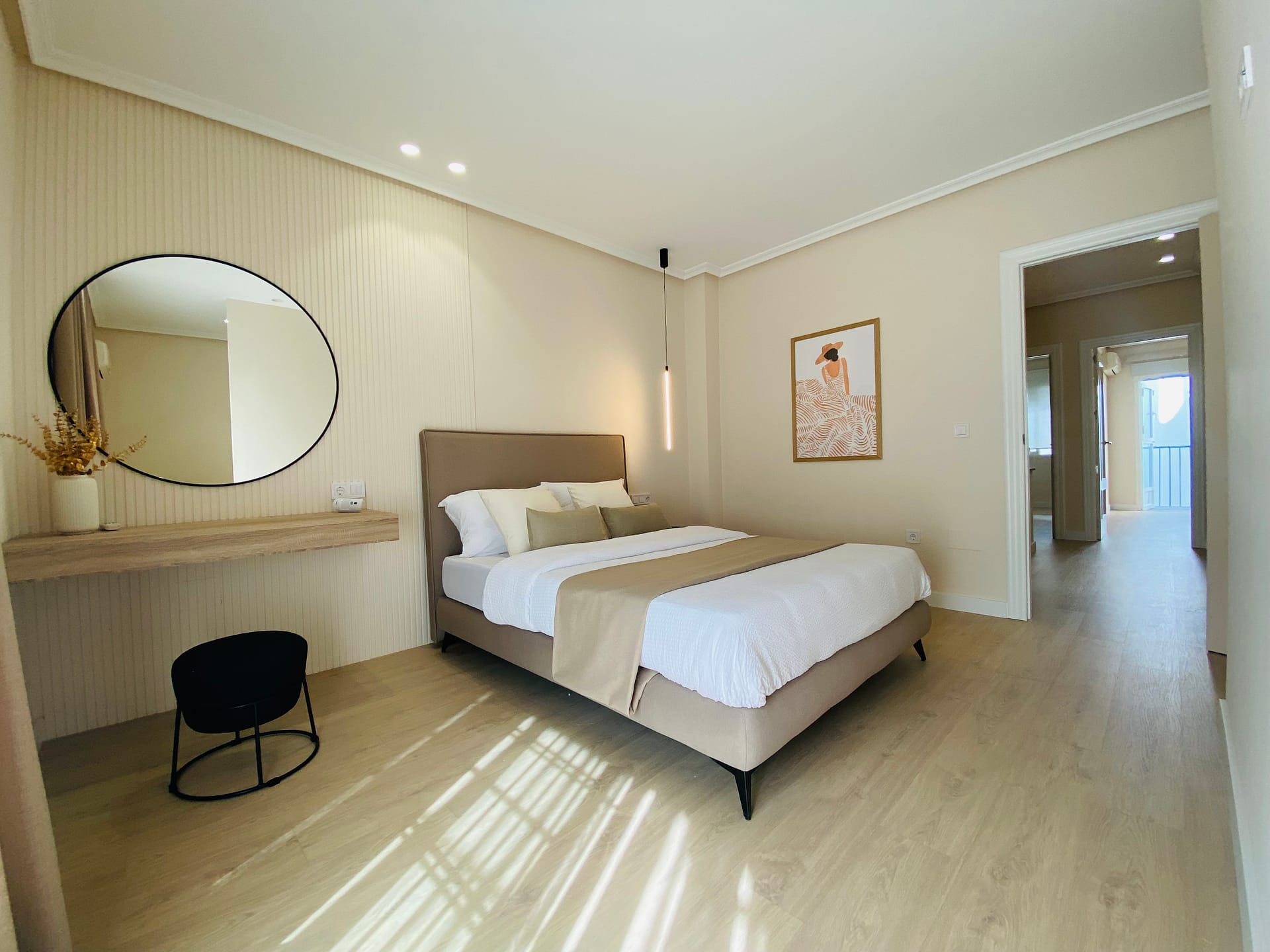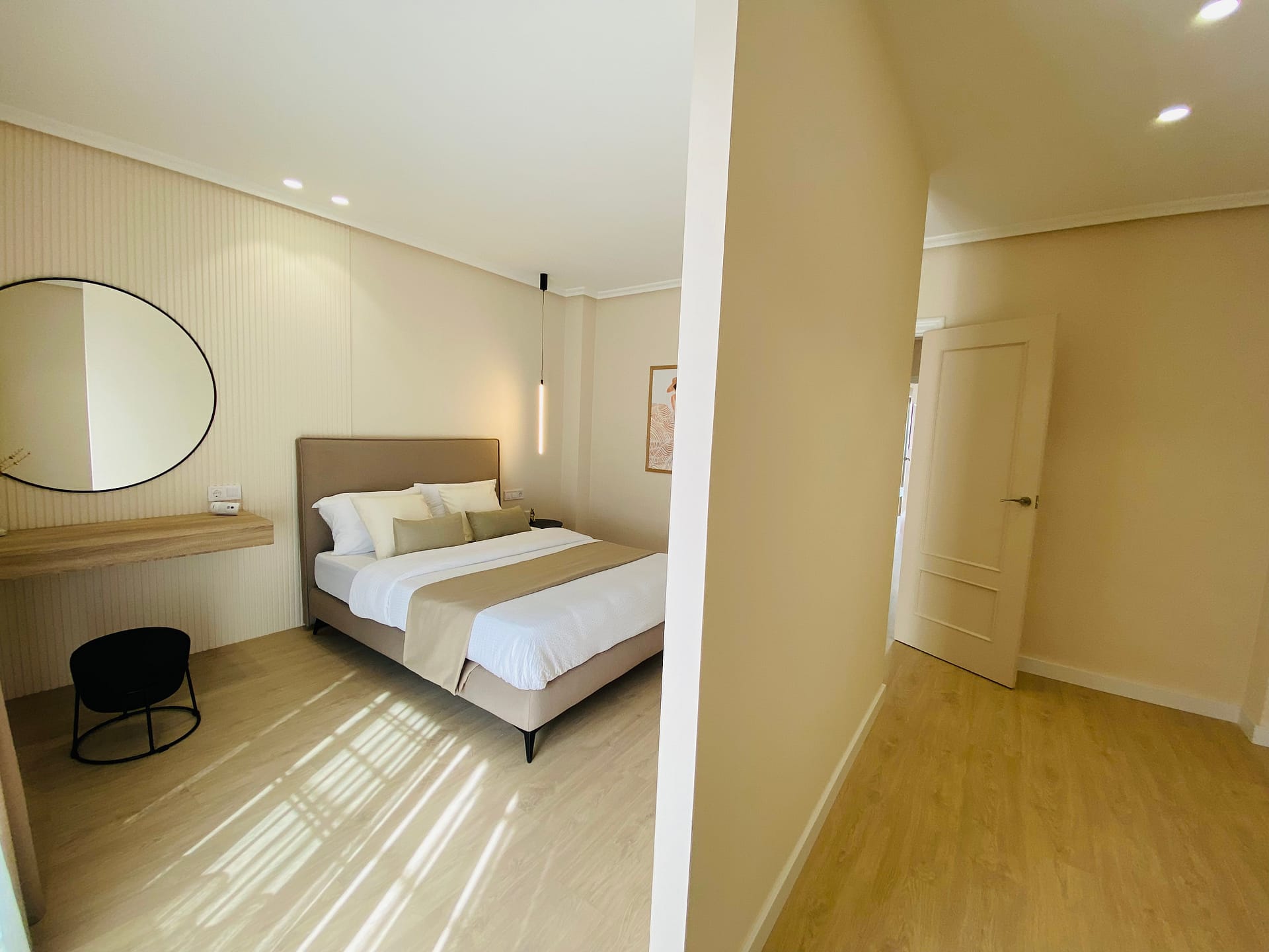 On the upper level of this gorgeous home, there is 3 double bedrooms; the master bedroom has a divided wall created to include a walk-in wardrobe and also direct access to the front terrace. 2 double bedrooms; 1 of which has access to the spiral staircase which leads to the private rooftop solarium, the perfect space to soak up the Spanish sunshine. Also on the upper level is a family bathroom with a corner bath tub, finished with a modern design.