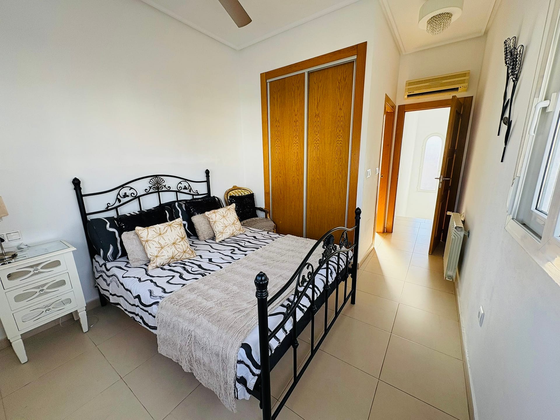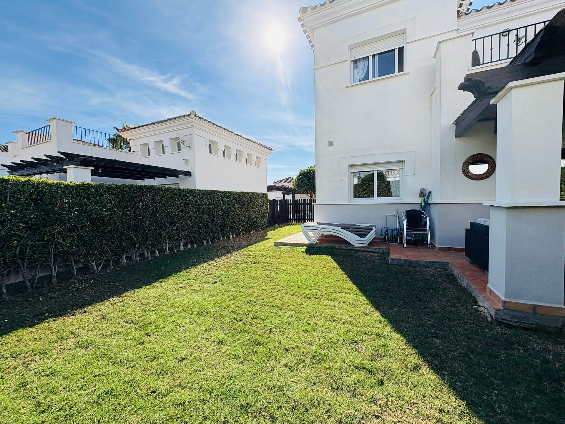 Experience luxury living in this stunning three-bedroom, three-bathroom Enebro-style villa located in the prestigious La Torre Golf Resort. This detached villa is designed for comfort and relaxation, making it perfect as a permanent residence, holiday retreat, or high-quality investment property. Inside, you’ll find a bright and spacious open-plan living and dining area with high ceilings and large windows that fill the home with natural light, alongside a fully fitted kitchen with ample storage and a separate utility room. The villa comes furnished, offering three double bedrooms with fitted wardrobes, including a master with en-suite, and three modern bathrooms. Outside, enjoy a private swimming pool, sun-soaked terrace, and landscaped garden, ideal for entertaining, family gatherings, or simply relaxing in the Spanish sunshine. Additional features include a private driveway and prime positioning within the resort. Residents benefit from the resort’s world-class amenities, including an 18-hole Jack Nicklaus golf course, communal pools, restaurants, bars, a supermarket, and 24-hour security. Conveniently located, the beaches of the Mar Menor and Murcia International Airport are just a short drive away.
