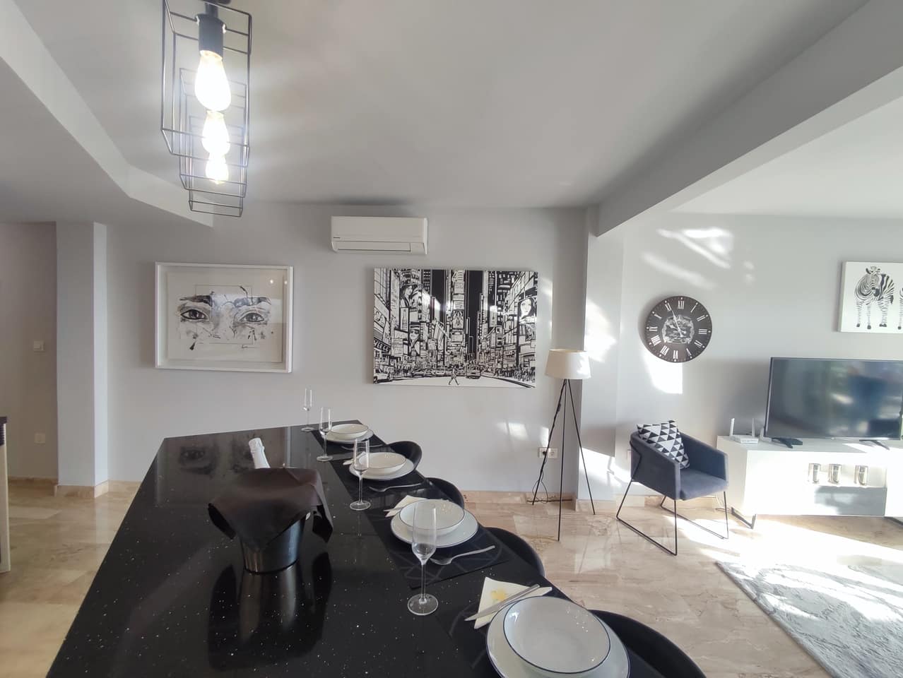 This luxury renovated 3 bedroom apartment is situated on the 4th floor with stunning views over the marina of Lo Pagan. Decorated and furnished to a very high standard the new open plan layout makes the most of cooking, entertaining, dining, relaxing and enjoying the sunny terrace with beautiful sea views. There are 3 bedrooms, a main bathroom with walkin shower and ensuite with roll top bath tub and walkin shower. There is a utility room for the boiler and washing machine.The property has hot & cold air conditioning throughout plus wall heaters in the main living room and master bedroom.Viewing is highly recommended to appreciate the high quality and facilities of this apartment.Sold fully furnished and ready to enjoy it would make an excellent home for permanent living or a stunning holiday apartment on the door step of the beaches, bars and restaurants.