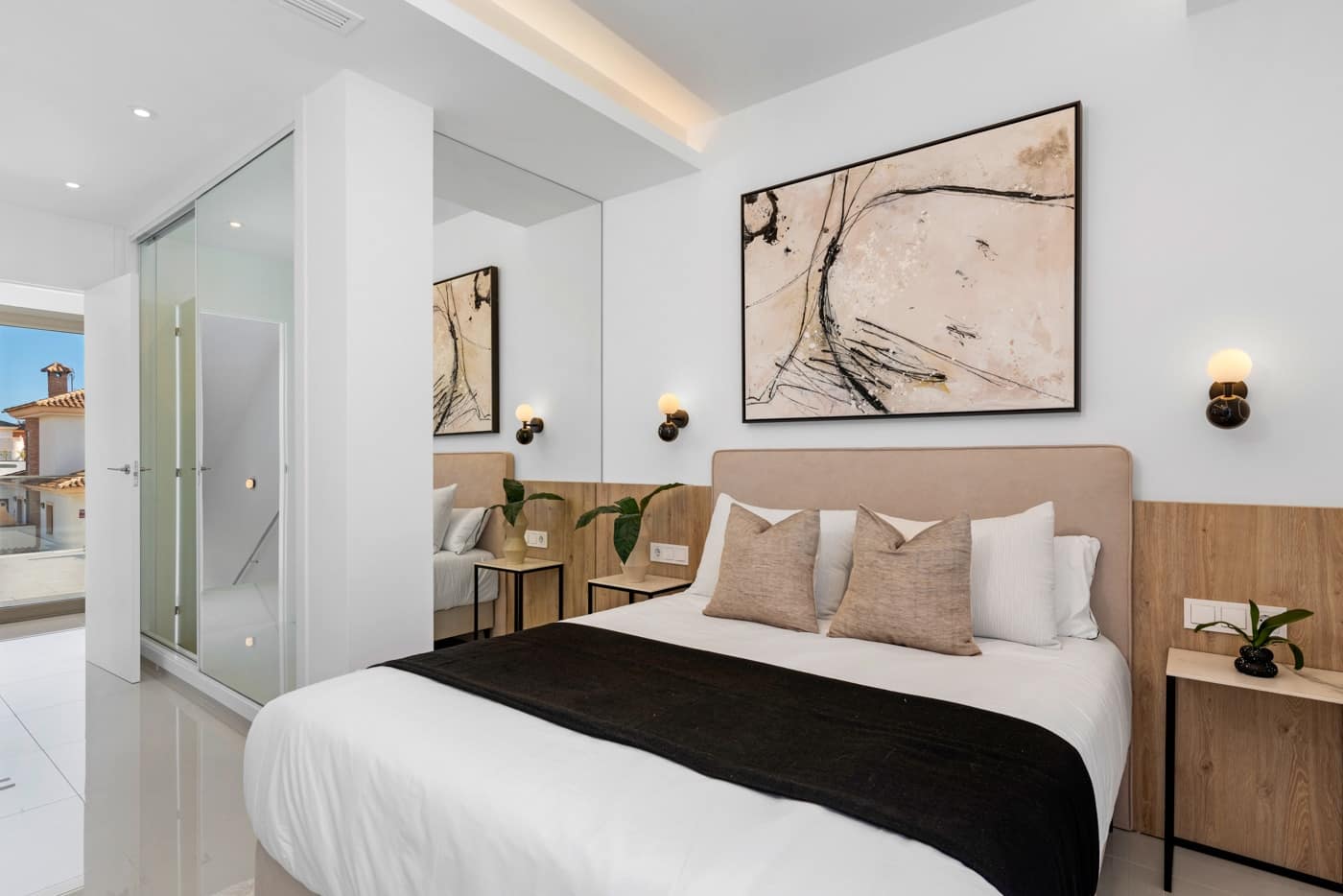 The exteriors of these properties have been carefully designed to maximize enjoyment of the Mediterranean climate. Each villa features a private garden, perfect for creating a personal oasis of tranquility. The presence of a private pool adds a touch of luxury, ideal for cooling off during hot summer days. Additionally, the terraces offer extra space for outdoor relaxation, al fresco dining, or simply enjoying the surroundings. The solarium is another highlight, providing an exclusive place for sunbathing with total privacy. The inclusion of an outdoor jacuzzi allows for moments of relaxation at any time of the year.