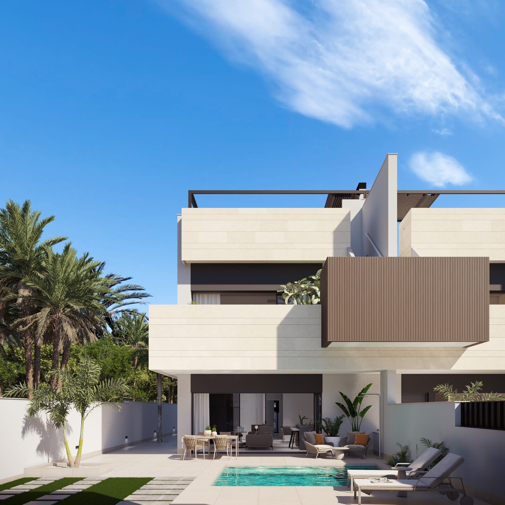 Located in the charming town of Pilar de la Horadada, this exclusive residential complex offers nine unique properties. The typology options include independent homes, high-bungalows, and low-bungalows, each designed to provide maximum comfort and functionality. The location is ideal for those seeking a tranquil environment near the sea, as it is just 2 km from the coast. Additionally, the nearest airport is 40 km away, facilitating access for frequent travelers.