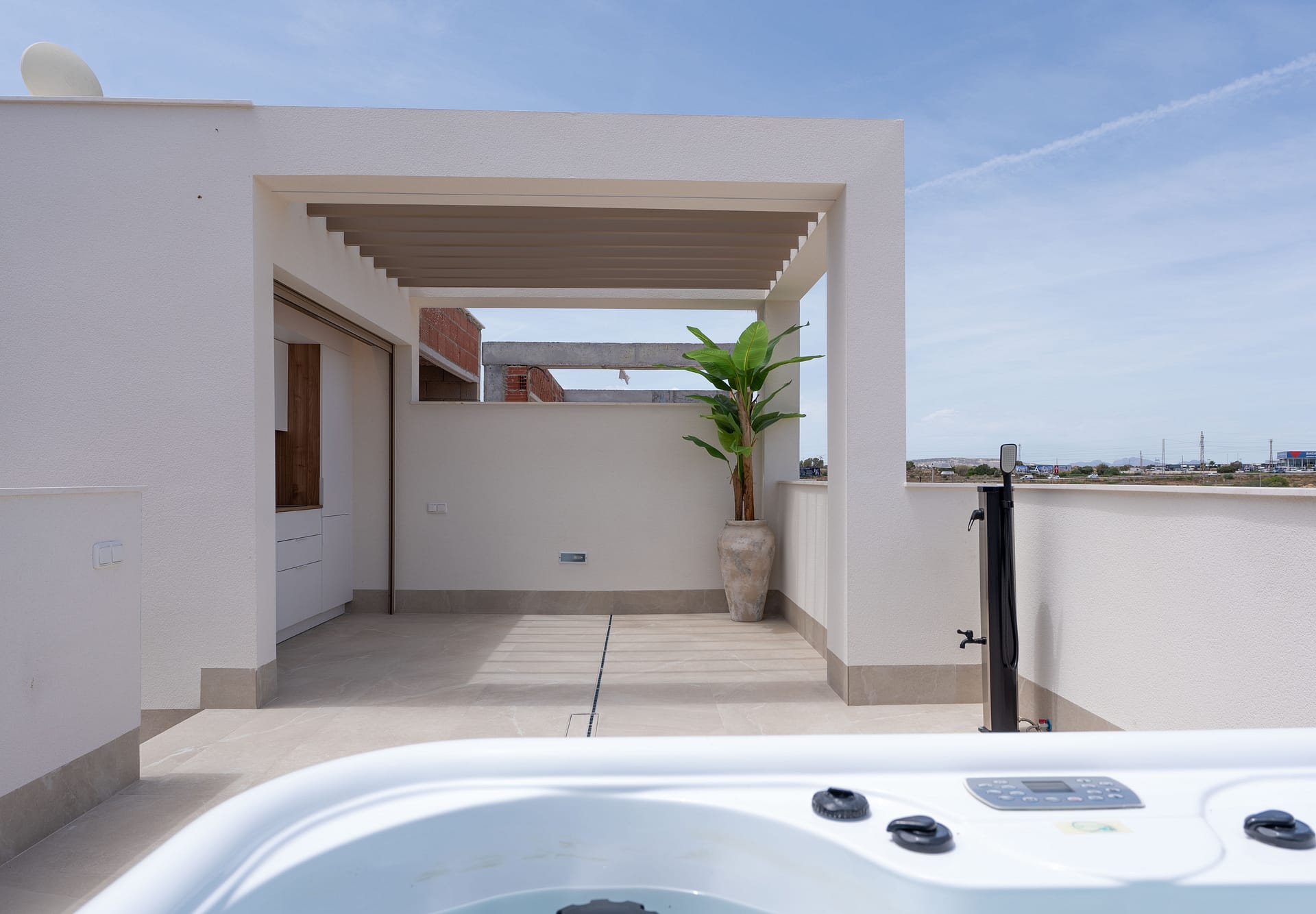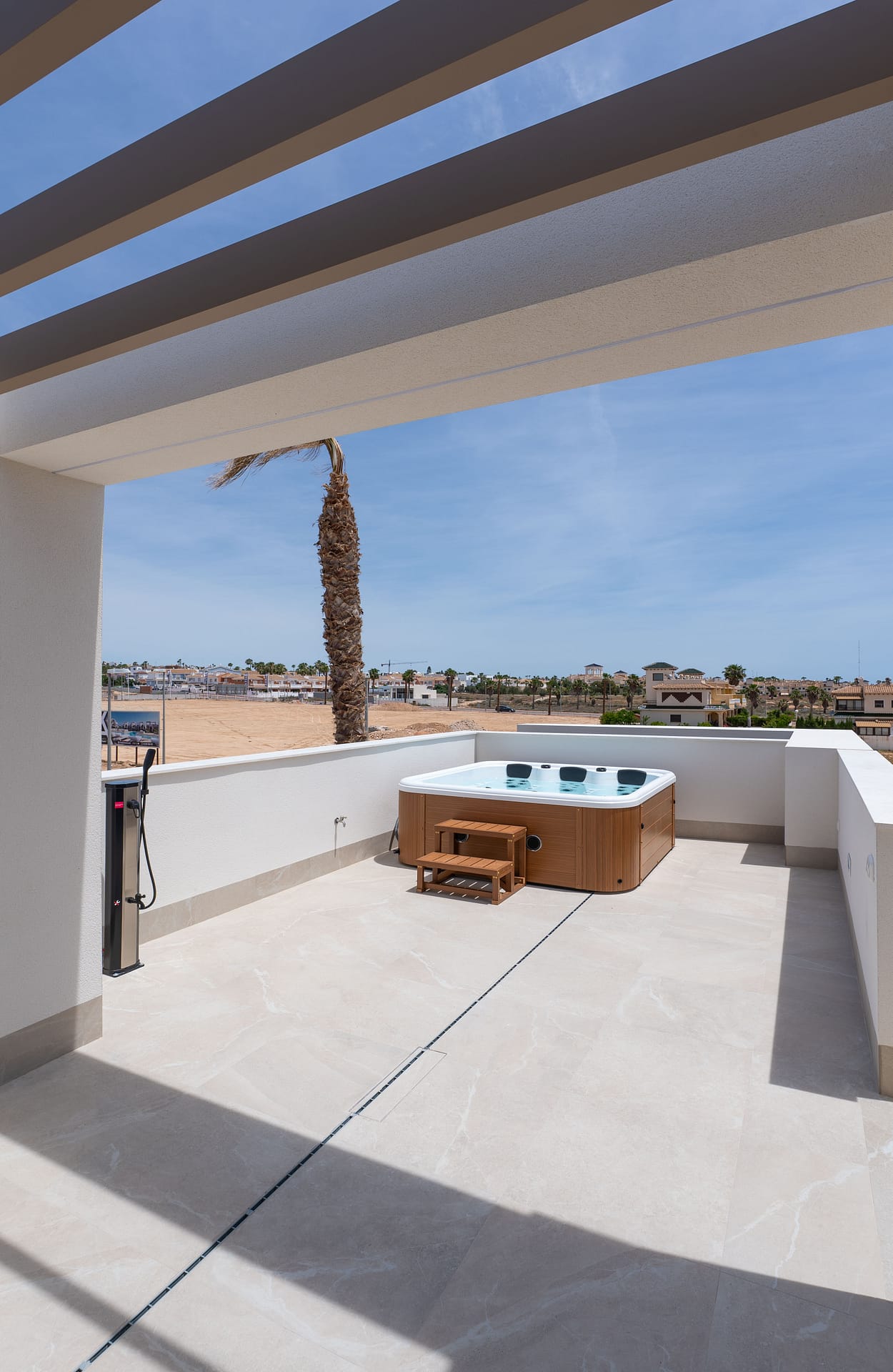 The exteriors of these townhouses are designed to maximize enjoyment of the Mediterranean climate. Each home features a private garden, ideal for moments of outdoor relaxation. The presence of a private pool adds a touch of luxury, allowing for refreshment on hot summer days. The terraces, spacious and well-oriented, offer a perfect space for enjoying outdoor meals or simply relaxing with a good book. Additionally, the solarium provides extra space for sunbathing and enjoying the panoramic views of the area.
