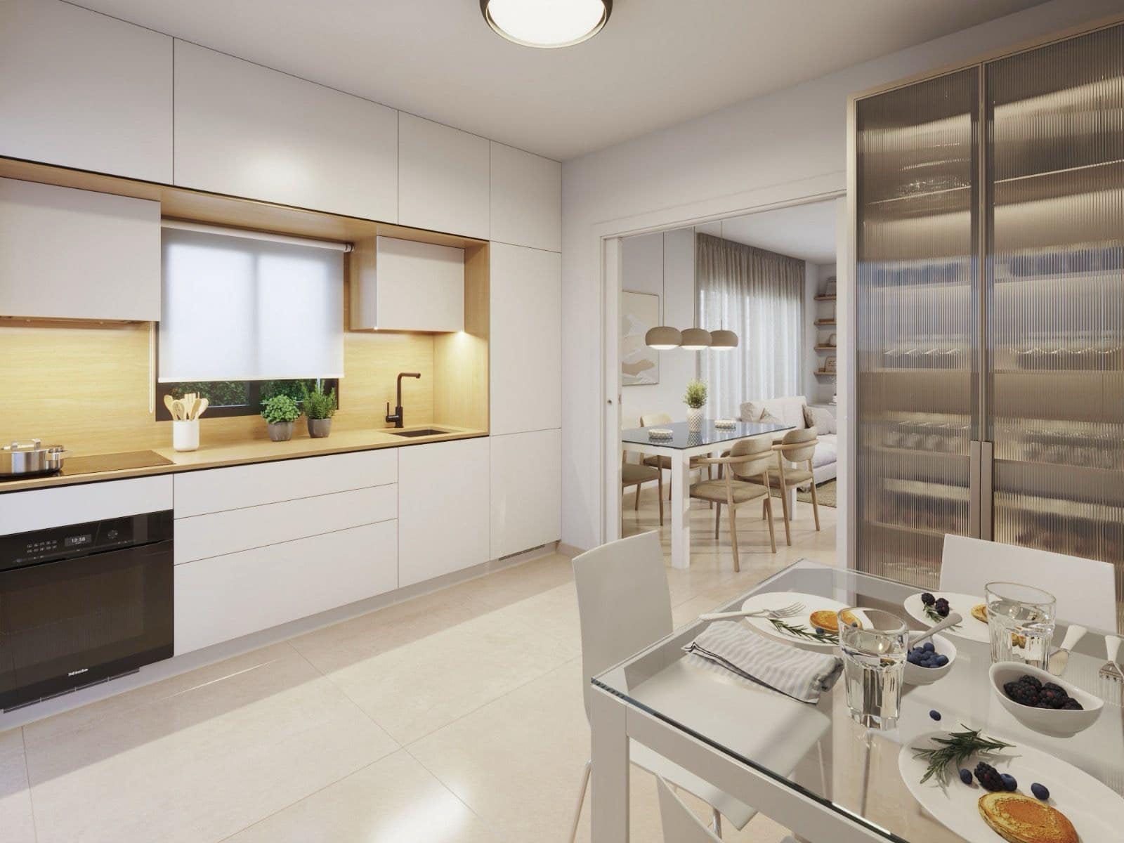The interior of the villa is carefully designed to offer a cozy and functional environment. The porcelain tile flooring is not only elegant but also easy to maintain, making it a practical choice for everyday living. The layout of the spaces is designed to offer comfort and privacy, with three bedrooms that accommodate the whole family or guests. The two bathrooms are equipped to meet daily needs with style and efficiency. The pre-installation of air conditioning ensures that each room can maintain a pleasant temperature throughout the year.