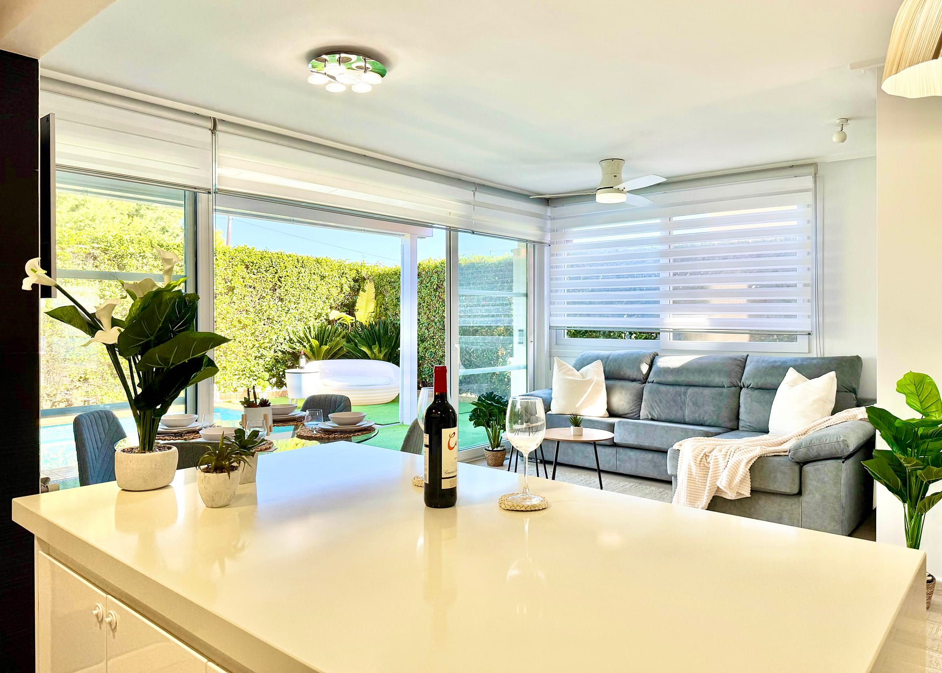 Large sliding doors connect the interior seamlessly with the garden and private pool area, creating the indoor-outdoor lifestyle buyers are seeking when purchasing property in Murcia.