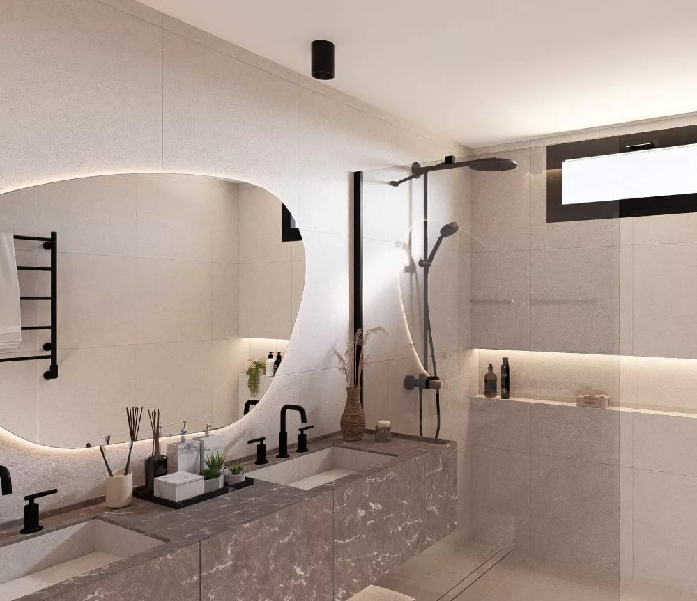 Inside, the villa is equipped with all modern comforts. It features four bedrooms and four bathrooms, ensuring space and comfort for the whole family. Climate control is guaranteed with air conditioning and underfloor heating, providing a pleasant environment year-round. State-of-the-art appliances and built-in wardrobes complete the interior features, offering functionality and style.