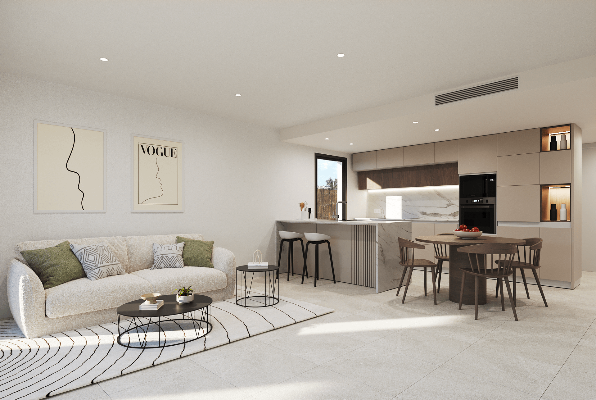 ENCINA 37 is a new community of Stylish Apartments in Santa Rosalia, Murica. The project includes 22 luxury apartments (one, two and three bedrooms), and 2 magnificent three-bedroom penthouses, all with underground parking and storage room included in the price. Third floor and penthouses benefit from direct views to the lake!