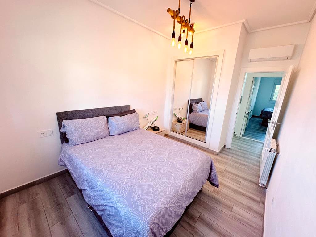 The villa offers two spacious double bedrooms, both with fitted wardrobes, along with a fully renovated family bathroom featuring a modern walk-in shower.