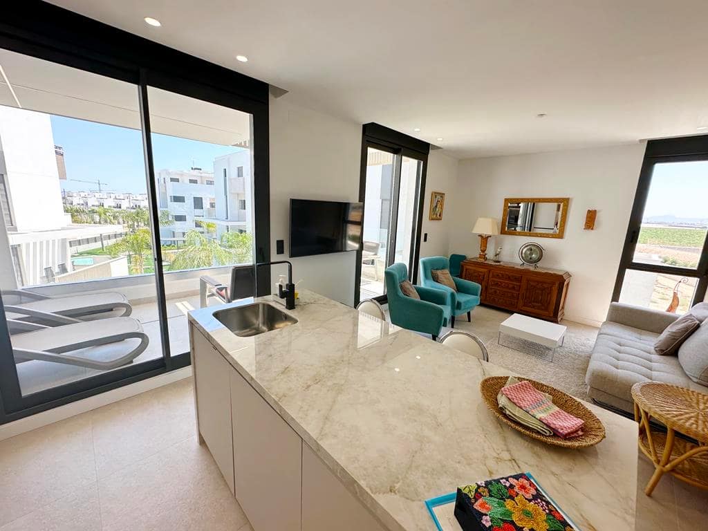 Located on the second floor, this stylish apartment is part of the highly sought-after Santa Rosalia Lake and Life Resort, just 5 km from the sandy beaches of Los Alcázares on the Mar Menor. The resort is famous for its spectacular Crystal Lagoon, beach club, sports facilities, adventure golf and elegant clubhouse, making it one of the most desirable destinations for property buyers in the region.