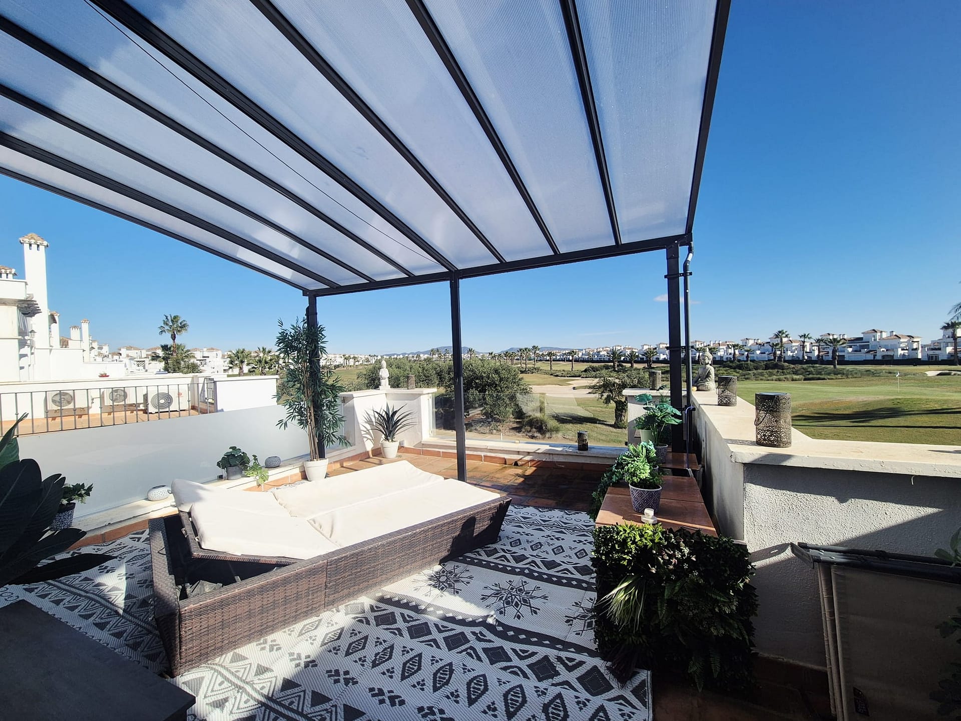 This townhouse has been carefully designed to maximize natural light and outdoor living. The glass-enclosed terrace allows year-round enjoyment of meals with a view, while the covered top terrace offers a private space to relax, entertain, or soak up the Murcian sun. The flexible side sitting room provides the option for a home office or extra bedroom to suit your lifestyle.