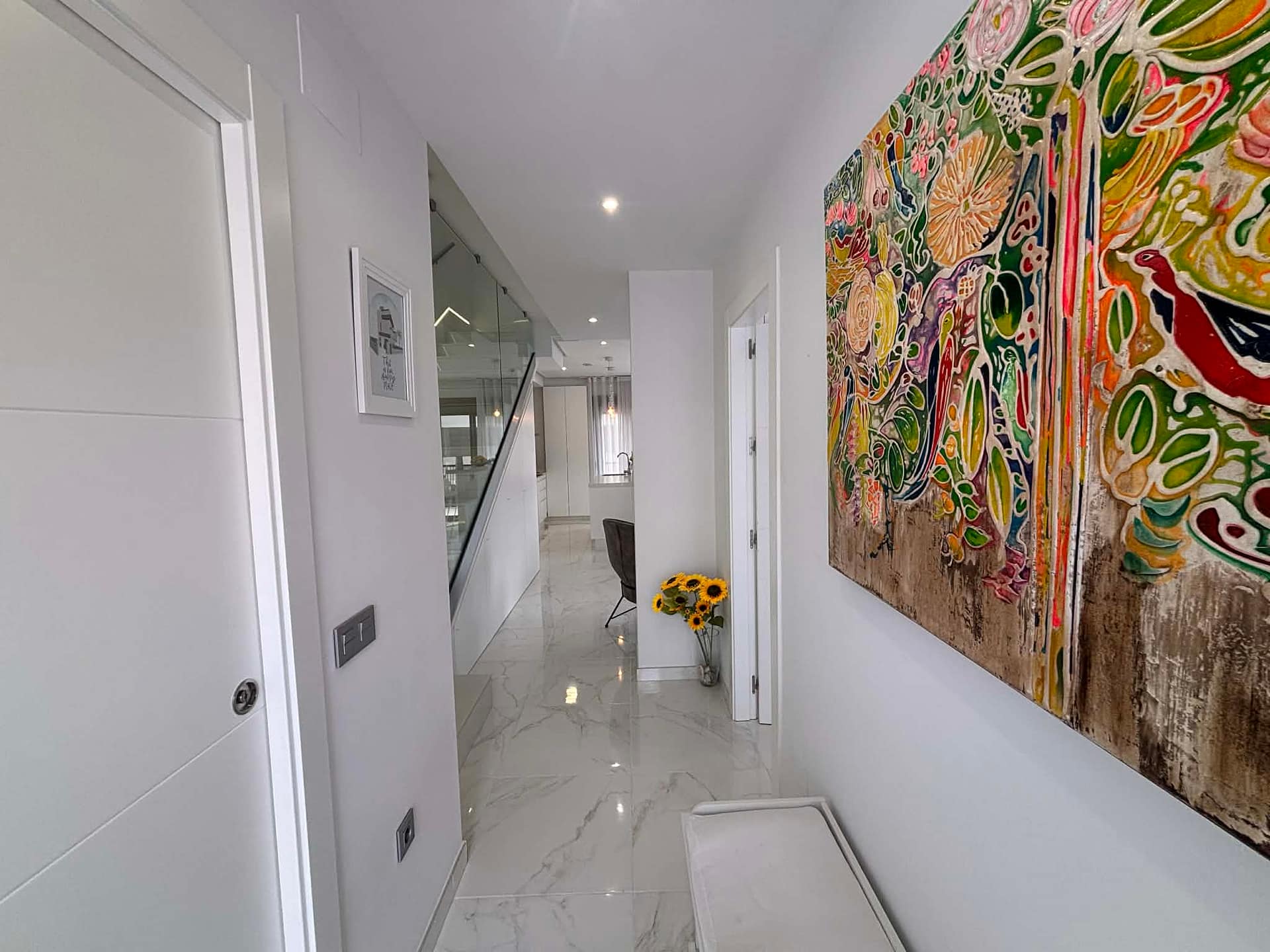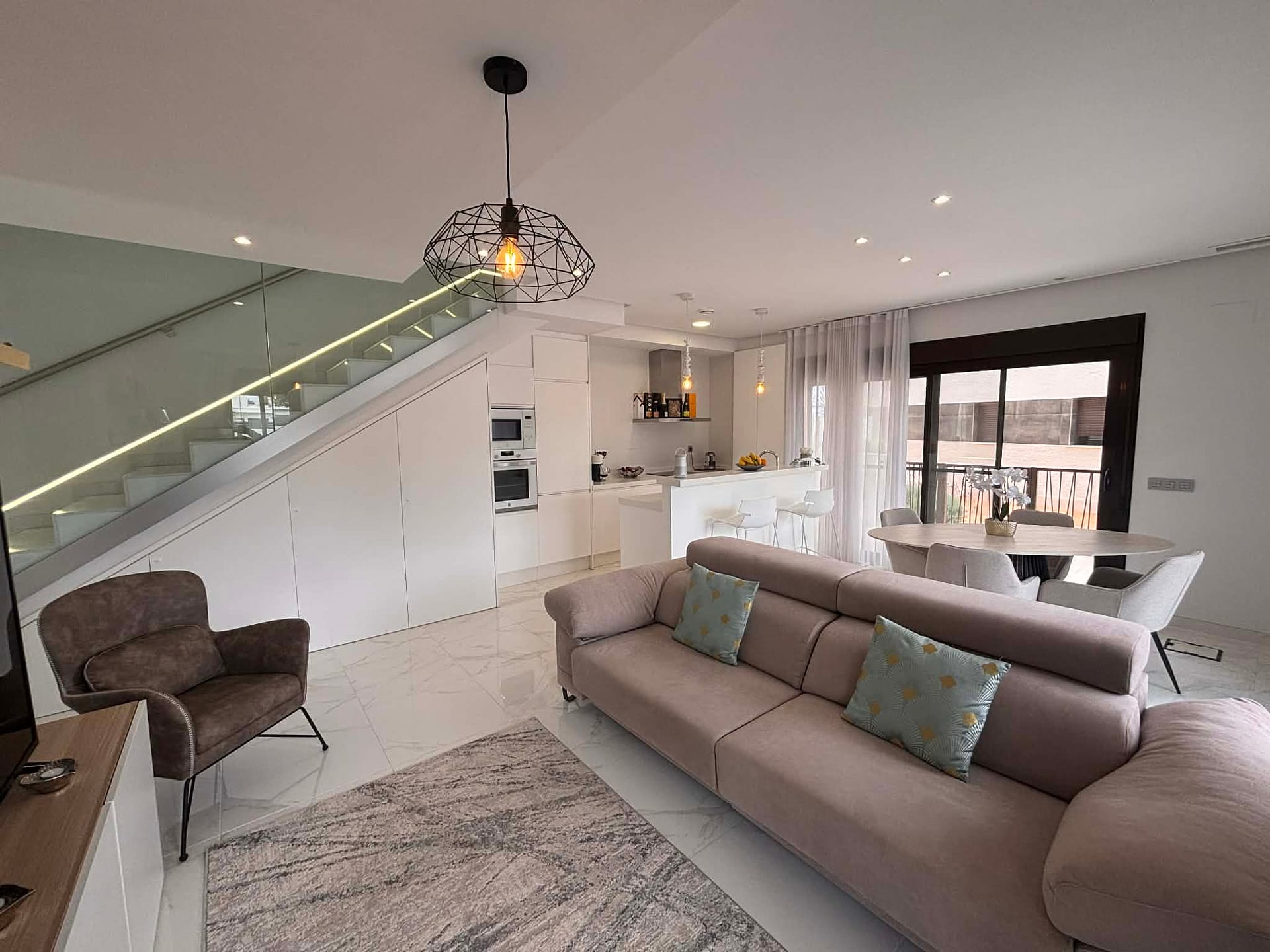 This beautifully presented townhouse is sold fully furnished with high-end, modern furniture, making it ready to move into. The property offers a bright and spacious open-plan living area, designed for comfortable living in the Murcia sunshine. In addition, the fully equipped kitchen includes quality appliances and a stylish central island, perfect for entertaining.