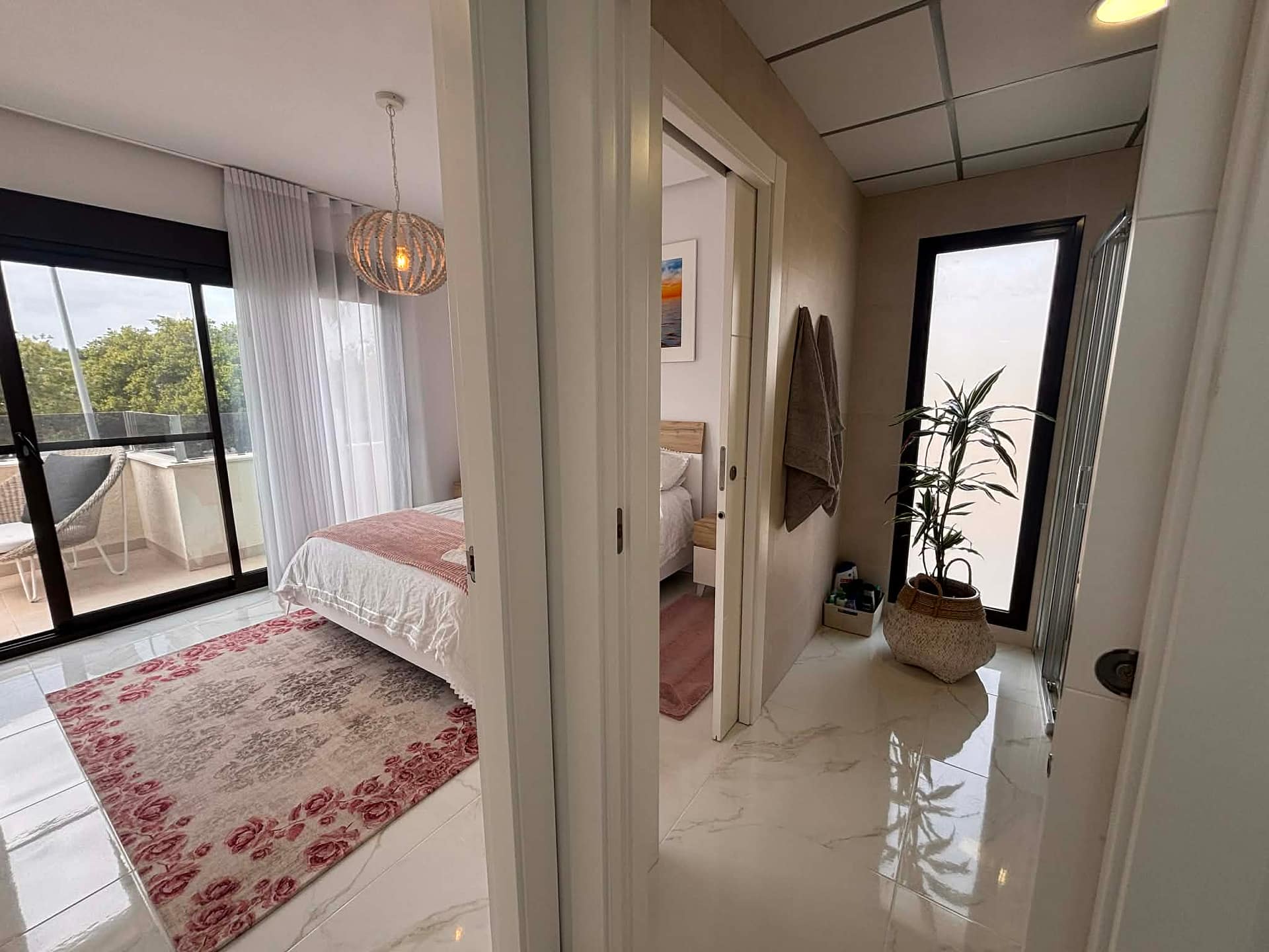 Outside, this townhouse for sale in Dolores de Pacheco offers multiple terraces, providing plenty of outdoor space to relax. The private rooftop solarium is ideal for enjoying the sun all year round. Moreover, the property benefits from ducted air conditioning throughout and access to a well-maintained communal swimming pool.