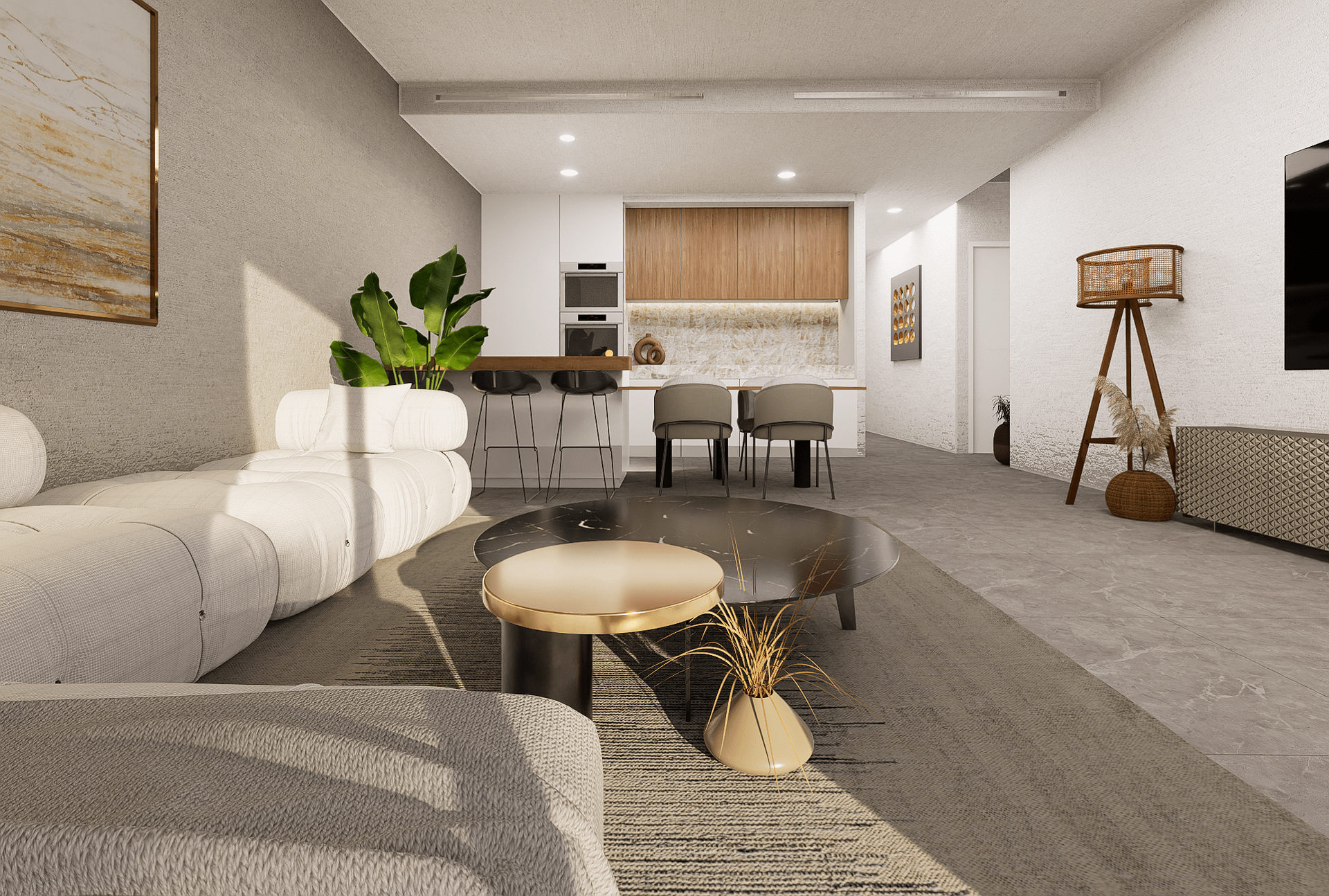 This fantastic residential complex is designed in a contemporary style with an open plan concept, comprising a fully-fitted kitchen and lounge-dining room.