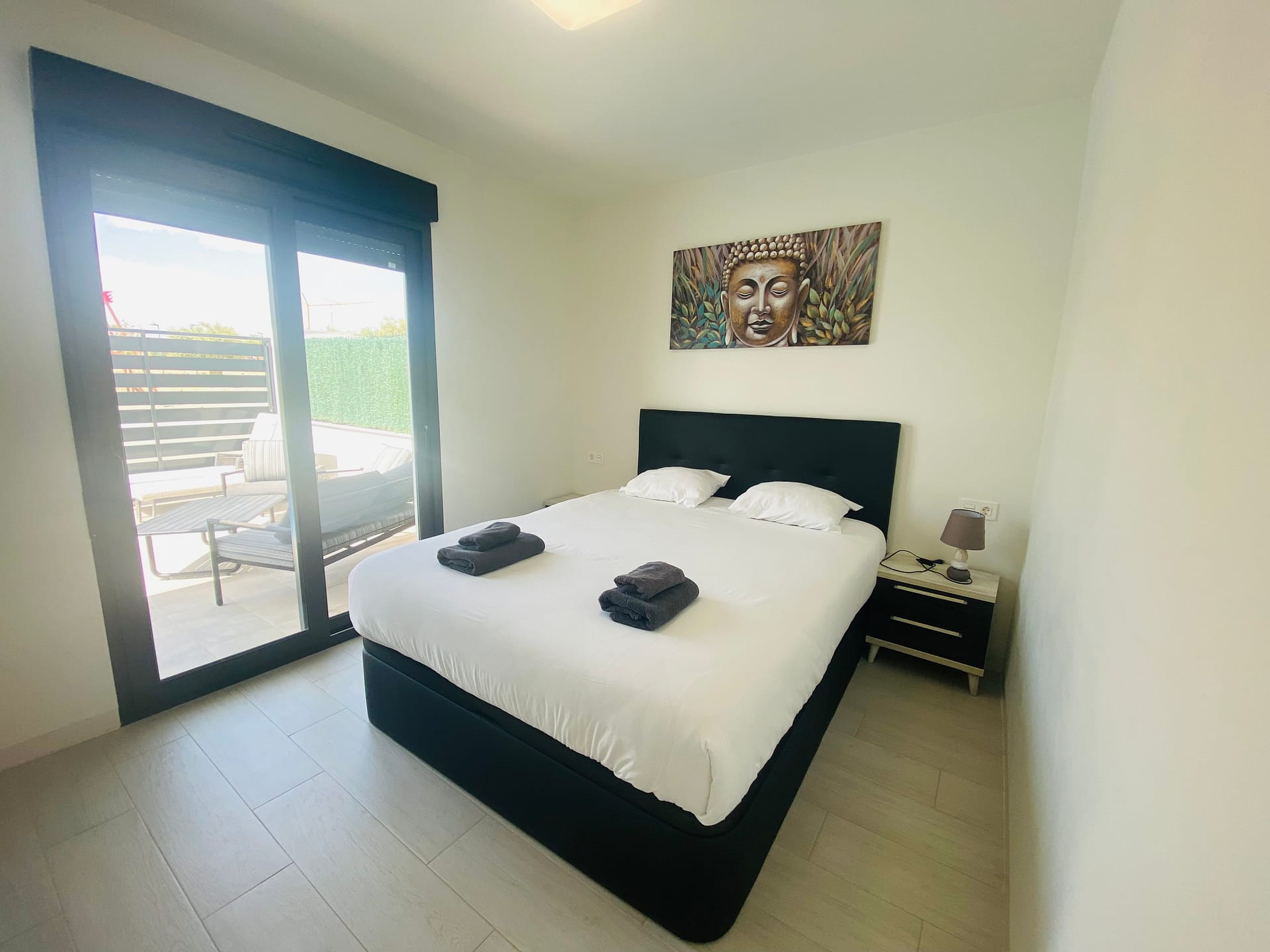 This modern 2 bedroom villa for sale in El Alba Resort Murcia offers stylish Mediterranean living in a secure gated community. It includes 2 bathrooms, a private pool, and excellent outdoor space. As a result, it is ideal as a holiday home, permanent residence, or investment in Murcia. The property also benefits from a rental permit and offers the opportunity to take over an existing rental contract, making it especially attractive for investors seeking immediate returns.