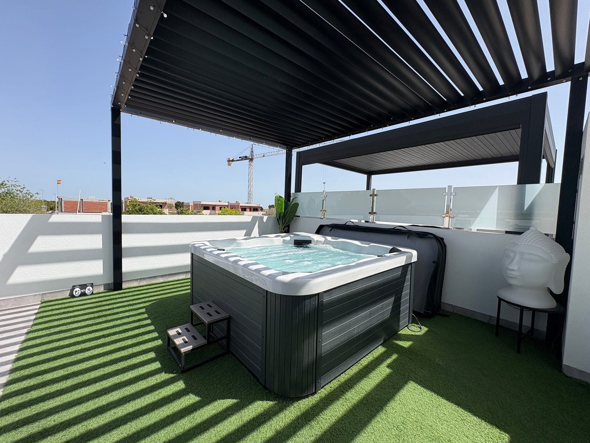 The roof solarium takes this property to another level, offering a complete entertainment and relaxation space with a hot tub, pergola for shade, and outdoor kitchen — perfect for hosting guests or enjoying quiet evenings under the sun.